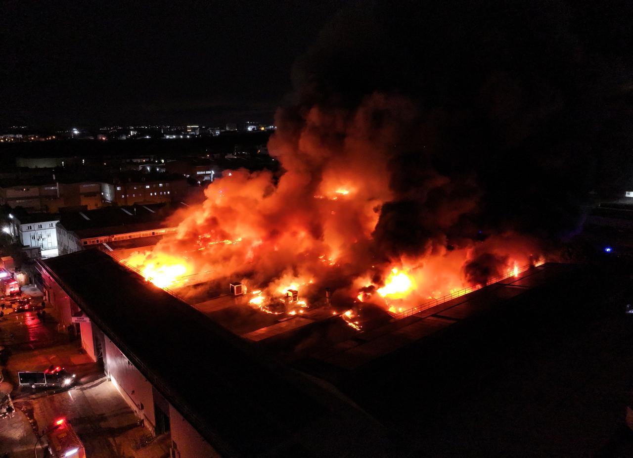 Polis takımları etrafta güvenlik tedbiri alırken, itfaiye takımlarının yangına müdahalesi sürüyor.