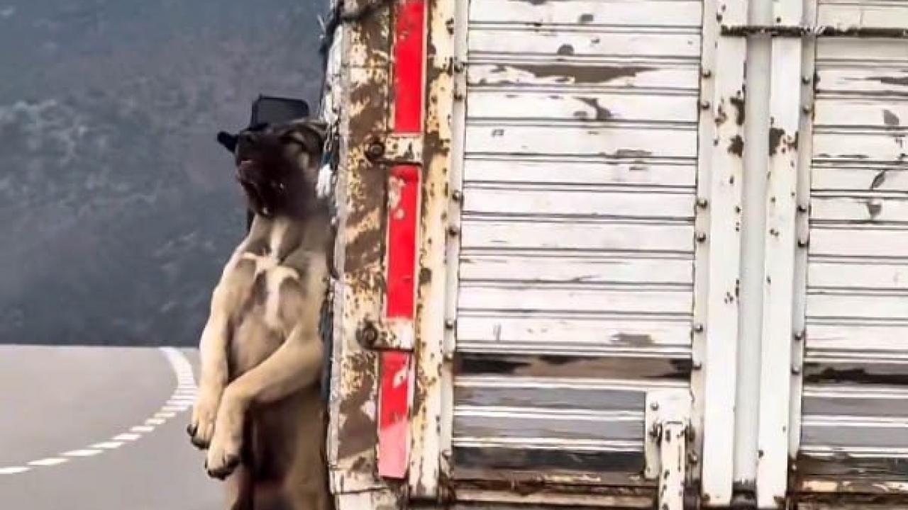 Yozgat'ın Çekerek ilçesi yolunda seyreden kamyonetin kasasında ipte boynundan asılı halde olan köpeği gören kişi,…