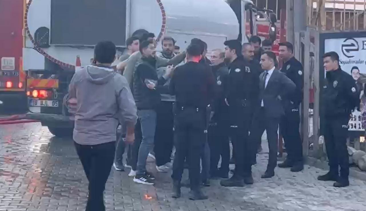 İş yeri sahipleri yangın yerinde güvenlik tedbiri alan polise saldırdı