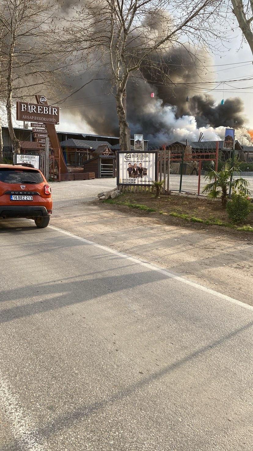 Yangın saat 18.00 sıralarında merkez Nilüfer ilçesi Alaaddin Bey Mahallesi Köy Yolu Caddesi’ndeki ahşap mesken, kamelya ve çardak satışı yapan iş yerinde çıktı. Satışa sunulan ahşap konutlardan birinde çıkan yangın kısa müddette büyüdü.