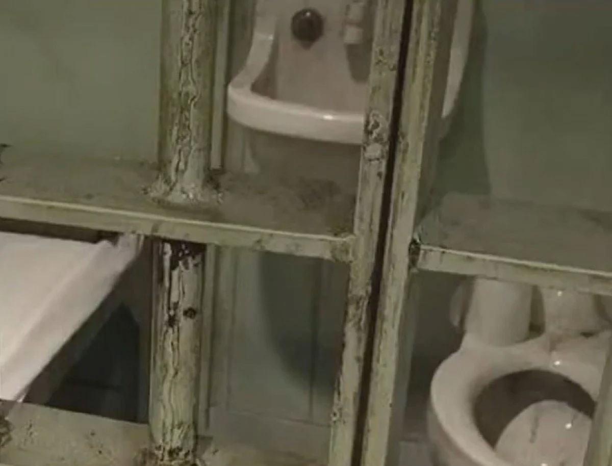 tv100’de yayınlanan manzaralarda, hücrede pencere olmaması ve hijyen şartlarının yetersiz olduğu gözler önüne serildi..