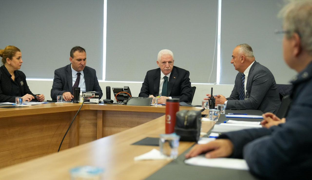 Depremin etkilerini asgariye indirmek için yürütülen çalışmaların değerlendirildiği toplantıda Gül, ilçe kriz merkezinde yürütülen çalışmalara ilişkin bilgi aldı.