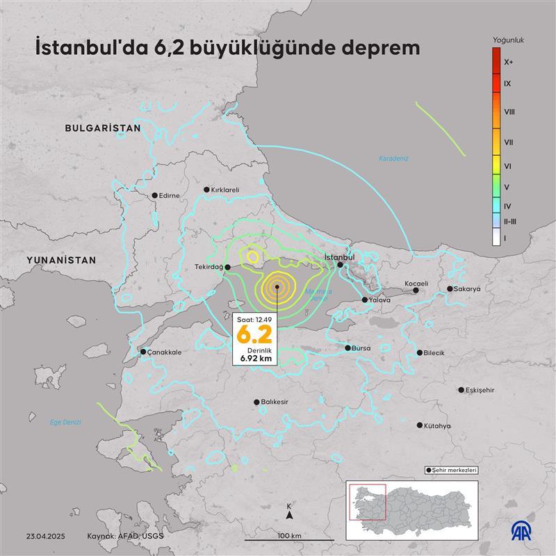 12:49 İlk depremin ardından Silivri açıklarında 6,2 büyüklüğünde bir deprem daha meydana geldi.
