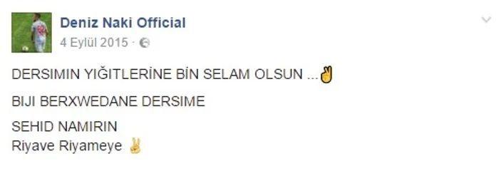 Deniz Naki 2015’te Tunceli Polis Karakolu’na PKK saldırısı olduğu gün “Dersimin yiğitlerine bin selam olsun” paylaşımı yapmıştı.