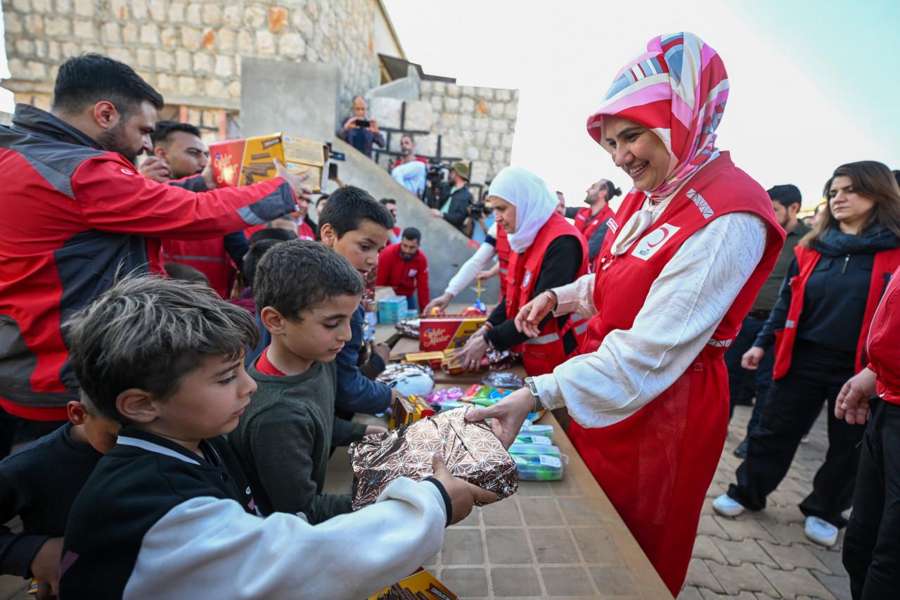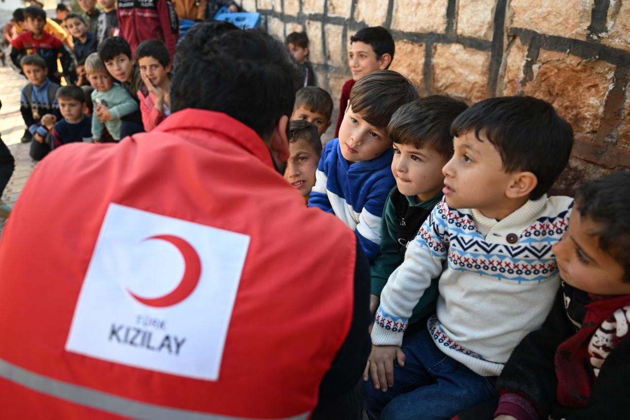 Türk Kızılay Başkanı Fatma Meriç Yılmaz, yardım gönüllüleri ile birlikte Suriye’nin kuzeybatısında bulunan İdlib kentindeki Al-Şami Engelli Kampı’ndaki çocukları ziyaret etti, onlara oyuncak dağıttı.